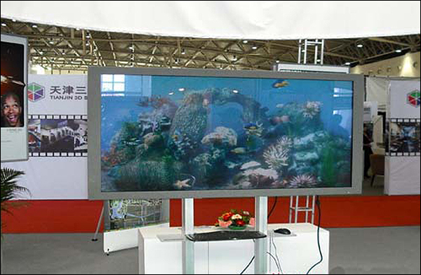 除了全息投影技术之外,裸眼3D显示器也是裸眼3D的重要展示途径。在最近的大屏幕展上,3D裸眼显示器的海底画面让众多的惊叹连连。各种各样的鱼在海藻中穿行,栩栩如生,让人真切感受到生命的活力。