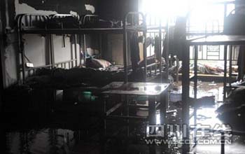 成都高层住宅着火 屋内高低床被烧得只剩空架