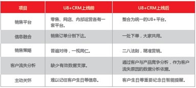 国药试剂的信息化实践说明:通过用友U8+ 的移动应用,整合所有数据平台,建立销售行动管理体系,针对性制定企业区别营销策略,准确分析既往不足,提升工作能力,建立全面、规范的精准客户营销体系,共享、过程透明的营销管控平台。