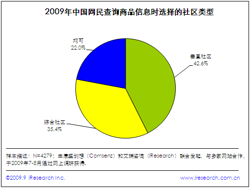 另据调研数据显示,2009年中国网民购物前在网络社区查询商品信息时,将垂直类社区作为首选,可见垂直类社区对用户的可观的影响力,其商业价值可见一斑。