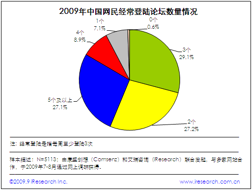 中国网络社区细分化趋势明显,根据艾瑞咨询调研数据显示,92.3%的用户经常访问网络社区的数量在两个以上,其中27.2%的用户经常访问两个社区,29.1%的用户经常访问3个社区,经常访问4个以上社区的用户达到36%。由此看出,用户对于网络社区的需求呈现多样化,单个社区较难满足用户的全部需求(仅7.1%的用户只访问1个网络社区),用户需求是度的。