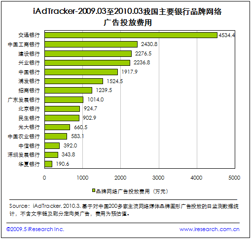 而且从近一年,各家银行网络广告投放费用的差异上,能够看出中小银行相比国有大银行在营销费用上所处的劣势。如光大银行和招商银行过去一年投放于品牌网络广告的费用仅相当于交通银行的1/7和1/4.因此,中小银行单靠传统营销方式,无法抗衡于国有银行雄厚的资金实力,亟待创新,通过成本低廉的新进行营销。