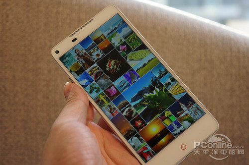 nubia Z5S配备可视面积高达5.0英寸的触控屏幕,符合跨界机型的范畴,屏幕分辨率为1920x1080像素,符合1080P全高清水准。像素密度高达 443PPI,画质十分细腻,在同价位机型中优势很大,可视角度接近于全视角的水准,亮度充足,对比度也比较理想。nubia Z5S采用同级别领先的1300万像素后置堆栈式CMOS摄像头和500万像素前置CMOS摄像头的拍摄组合,内置闪光灯,支持全景拍摄、自动对焦以及高达4K级别的超高清摄录功能。