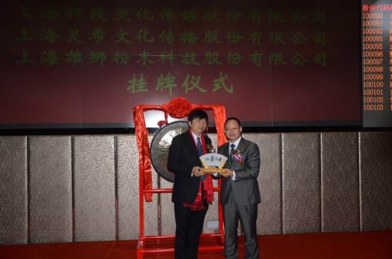 随后,丁兴良董事长与股权托管中心高管互相交换礼物,丁兴良董事长收到了股权交易中心送出的标志着成功挂牌上市的缩小版铜锣,作为留念。之后灵希股份挂牌仪式进入最关键的环节,11时,丁兴良董事长与嘉定区区委常委副区长费小妹共同敲响上市铜锣,标志着灵希股份正式登陆上海股权交易中心,成为国内第一家成功挂牌上市的管理咨询与培训公司。