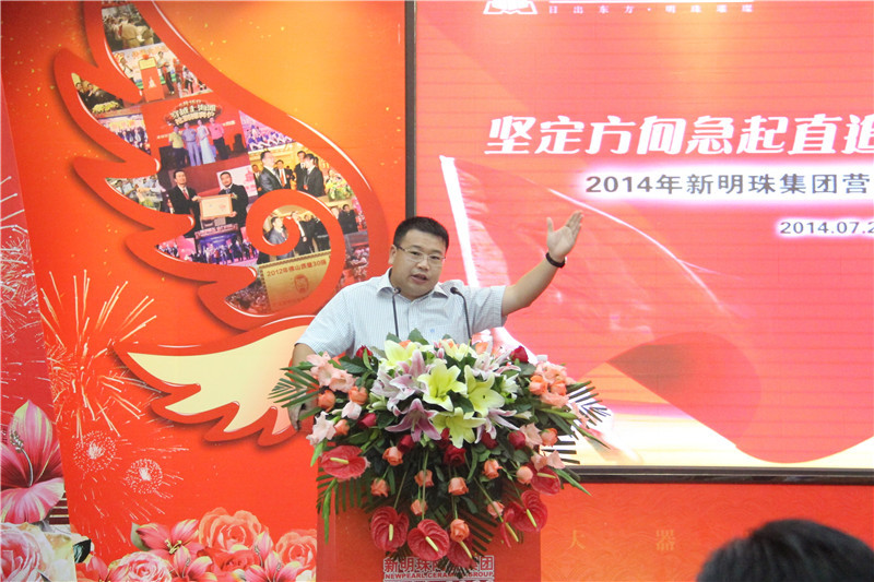 彭新峰副总裁从“2014年上半年目标考核完成情况、上半年工作成效、存在不足、下半年营销新思”四个部分进行报告,分别阐述了目标考核、网络建设、终端专卖店形象、促销活动、内部管理、创新品牌、创新产品、分销商管理体制、客户满意度调查、系统化培训及营销新思等方面,并提到上半年营管中心制订了“系统打造竞争力、全面提升各项营销工作;塑造强大凝聚力,高效团队,确保目标达成”的工作方针。各品牌、各部门积极开始行动,外扩网络,内强基础,强化服务,抢占市场,各项工作都有了一定的成效。