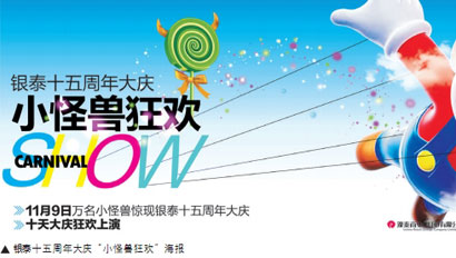 在这一次的庆典中“Hi,小怪兽!”是活动主题,充满娱乐。提倡每个中都有一只小怪兽,年轻时,让你又爱又恨的人,是“小怪兽”;善良、挑剔的顾客是“小怪兽”,帮助银泰一直向前;15周岁的银泰也是“小怪兽”。跟“小怪兽”说hi,打出热烈拥抱体验消费的姿态。