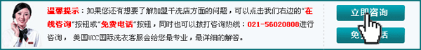 如果您还有更多关于开干洗店的问题可以登录美国UCC洗衣官网或是直接拨打美国UCC洗衣加盟热线电话美营销技巧国UCC洗衣一直都以全心全意为干洗店加盟商服务为旨,为了让更多朋友了解干洗行业信息。从现在起,关注美国UCC洗衣微信,我们将为您带来较新的公司优惠政策、 行业动态、干洗常识、干洗店经营管理、干洗技术培训等方面的信息,回复姓名、手机、地址就可以免费资料(干洗店设备价格表、开店指导等开干洗店必备材料)。