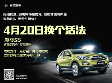 赢口碑,促销量:深化用户对产品卖点的核心记忆点,提升产品认同,催化市场终端,力求做到海马S5未上市即热议、上市即热销。