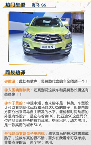 车展期间,海马S5“榜上有名”,荣登汽车门户发布的新车三大榜单。