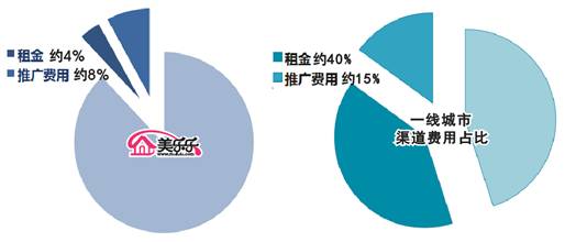 (美乐乐与一线城市品牌家具渠道费用占比比较图)