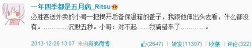 餐饮类可能出现的送餐。必胜客送外卖的小哥一把揭开后备保温箱的盖子,我跟他伸出头去看,什么都没有沉默五秒。小哥:对不起我骑错车了。