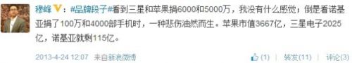 借助社会热点,比如重大灾难及医疗上学就业等民生问题。(雅安地震后)看到三星和苹果捐6000和5000万,我没有什么感觉;倒是看诺基亚捐了100万和4000部手机时,一种悲油然而生。苹果市值3667亿,三星电子2025亿,诺基亚就剩115亿。