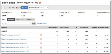 企业新销售通常来自于不同的销售平台,包括淘宝店、天猫店、京东店、微店、网站等。因此,为了借助数据分析评估销售计划或分析销售结果,必须围绕用户购买或消费的行为进行逐层分析,需要分析的数据包括页面浏览量、用户访问时长、用户浏览页面数(见图1-15)、店铺/网站率等。