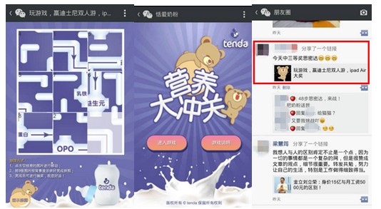 要让账号活跃起来,就少不了真实有效的活跃粉丝和定制化的活动,这些都是极能运营人员的细致水平。为了筛选真实有效的粉丝,互动派母婴运营组为恬爱奶粉精准导入大数据分析工具,从5亿微博用户中筛选出有关婴儿、奶粉、育儿等关键词的目标粉丝,并通过主动评论、关注来与他们进行互动,吸引他们关注恬爱品牌账号并最终成品牌的粉丝。有了一定量的真实粉丝后,不仅要细心、及时回答每个粉丝的问题,还要通过定制化的活动来激活粉丝的活跃性。为此运营人员结合产品信息开发出针对微信的 恬爱“营养大冲关” 游戏,上线第一天就有5千多人参与并转发到朋友分享,当天的率突破了10万,也使更多的粉丝了解到了恬爱产品的核心价值点。