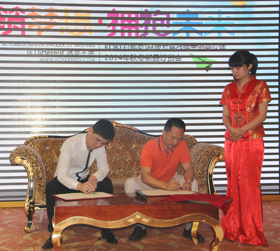 酷奇鞋服有限公司董事长、总经理与代理商代表共同启动本次订货会签约嘉佳