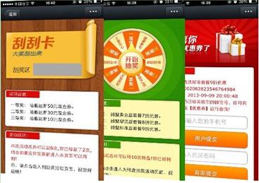 还在为传统的活动方式参与用户少而烦恼吗?刮刮卡、大转盘,新奇好玩,而且参与方式简单,能够快速的吸引新用户关注并且参与,定期举行微信活动还能促进消费者对店铺的好感度,最终将消费者吸引到店里来购买。并且通过定期的微信营销活动赠送给老顾客一些礼品,维系和老顾客之间的关系,增加老顾客对该店的忠诚度。