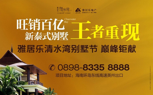 新浪乐居讯(编辑 李俊丽)2014年巴西世界杯拉开战幕已有一周时间,海南楼市营销也名副其实的进入了“足球季”。“世界杯”主题无疑将成为6月各大开发商的营销牌,而多个楼盘也借此机会,推出限时优惠、或是新品入市、或是尾盘扫货。广物滨江帝景限时疯抢9折、雅居乐清水湾别墅节开幕,泰式低密美墅最低584万元/套起。同时,其雅居乐月亮湾项目亲海泰墅,最后10套限时清货。还有更多活动尽在周末看点,购房者们可不要因为看球赛错过了“淘房”的好时机哦!