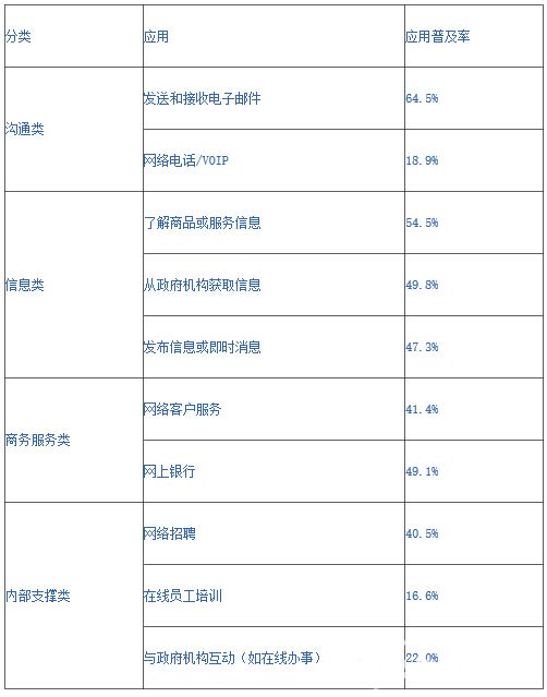 表企业主要互联网应用普及率一览表