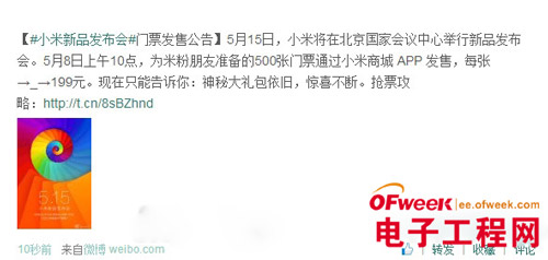 导读: 今天上午10点,笔者进入小米官网发现,“好消息”已经出现,那就是小米将于5月15日14:30在国家会议中心举行2014小米新品发布会。虽然官网并没有说明具体的发布产品,但从之前的消息来看,即将发布的应该是小米3S无疑了。