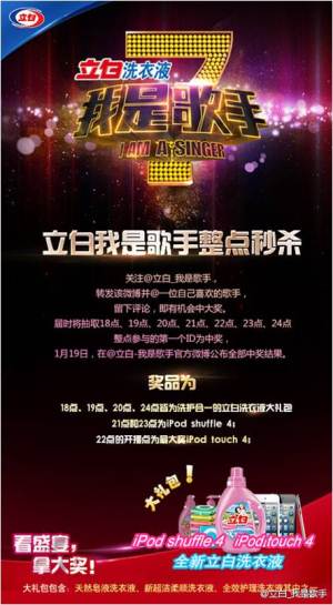 【挑战】立白洗衣液与《我是歌手》节目建立纯净、本色、正能量内涵关联