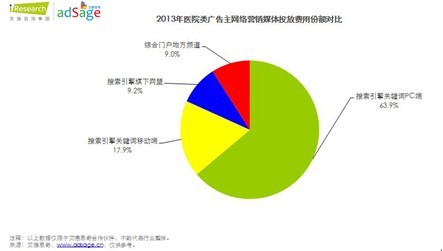对于传统医疗企业来说,随着互联网广告技术的发展,网络营销正在成为一个非常有效的销售方式。医疗网络营销在医疗医院行业也成为受关注的热点之一。如何做好医疗网络营销是所有医疗团队所关心的话题。近日,中国最大的SEM公司艾德思奇联合艾瑞发布了《中国医院行业广告主网络营销策略研究报告》。在艾德思奇网络营销策略看来,医院类广告主网络营销整体投资回报率达54.4%,搜索引擎关键词PC端广告平均点击价格最低,搜索引擎的较高投资回报率使其仍然是医院类广告主的首选。专科医院是投放的主力军,竞争也最为激烈。医疗行业的关键词投放中,最低的词都有数十元以上,而很多大城市的竞争更为激烈,一个关键词甚至出价到数百元以上,价格之高令人乍舌。所以在搜索引擎关键词的营销中,借助专业的工具达到比较好的优化效果从而节约成本成为每家医院的必选。艾德思奇旗下最优秀的SEM工具-艾德软件2013年管理广告额超过30亿,占到医院网络营销整体市场份额的50%。搜索引擎关键词为医院行业网络营销首要投放渠道根据艾德思奇合作伙伴提供的数据,2013年艾德思奇管理的医疗类广告主进行网络营销时,投向搜索引擎关键词的份额高达81.8%(其中PC端为63.9%,移动端为17.9%)。由于搜索关键词广告是与网民进行搜索时使用的关键词所匹配的,目的性强,需求较为明确,这样使得广告更加有针对性,率相比展示类广告会有一定的提高。所以,对于追求广告效果的大部分医院而言,搜索关键词广告能够较为匹配他们的需求。搜索引擎是中国医院类广告主进行网络营销时首选的互联网,约80%-90%的网络营销预算投向搜索引擎,是常规预算。