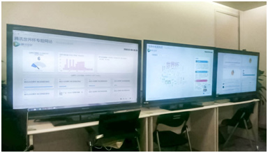 在近一千小时的周期中,这三个屏幕随时都在滚动着一些关键的数据,提示团队最即时的赛事、场外、相关话题热点。