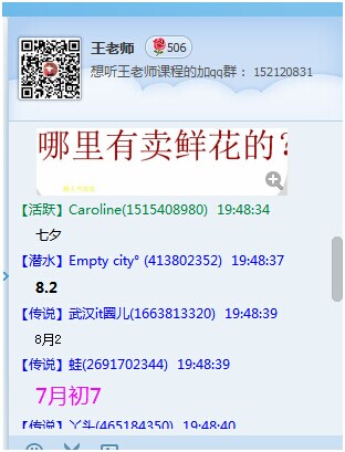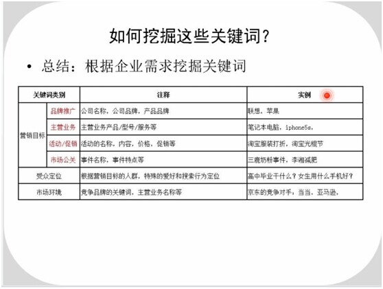王老师在课堂上演示了以鲜花、英语教育、手机等品牌为实例,大家从品牌、主营业务、活动、市场公关、受众定位、市场六大方面挖掘关键词,听课者连连惊叹。就以鲜花为实例,王老师首先为大家分析了鲜花付费推广的关键词选择,并举例马上到七夕情人节了,鲜花商家可以将活动词/促销次选作关键词进行推广,与热点结合的词总是受到关注的。