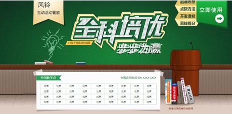 2. 预订报名:选中你所需要的课程,留下你的姓名、手机、地址、邮箱等相关信息,便可以预定报名,方便快捷,一键操作;3. 营销宣传:企业客户可以通过微信风铃平台进行各种宣传活动,不论是品牌、优秀的宣传还是对精品课程,促销课程的宣传,都可以覆盖;