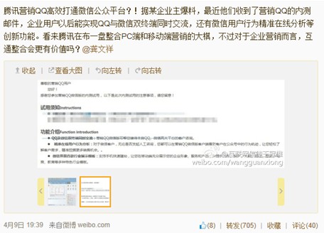 (大V爆出的营销QQ微信版功能截图及内测试用邮件)