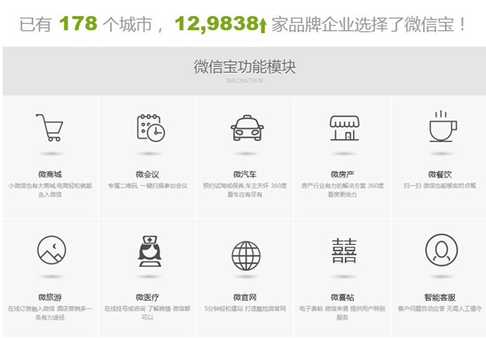 记者在微信宝网站上了解到,微信宝目前拥有的行业解决方案遍及汽车、房产、餐饮、旅游、医疗等多个行业和领域。微信宝作为国内第一款微信营销产品,不仅拥有丰富的营销经验,同时也掌握了先进的营销技术和解决方案。据微信宝官网介绍,微信宝这些行业解决方案都是立足现实问题,紧扣微信营销特点所研发出来的。