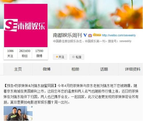自从今年4月网友了奶茶妹与京东掌门刘强东相恋后,一时间不知碎了多少宅男们的心,同时一下成为网络焦点。近日(7月26日晚),又有曝料称在南京肯德基广场看见奶茶妹和刘强东的踪影,据称两人在某奢侈品店花费了19万,而后更是现身南京某酒店云端餐厅酒吧与章泽天家人共进晚餐,二人全程亲密挽手,甜蜜羡煞旁人,情到浓时还忘情相拥,疑似同居,好事将近。