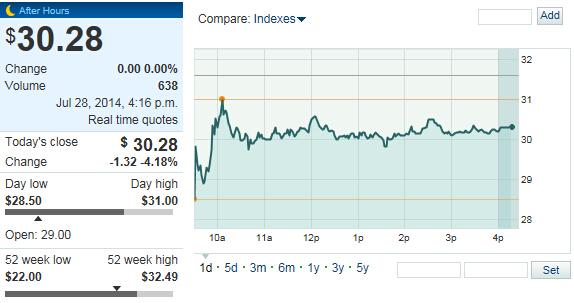 截至收盘时,聚美优品股价下跌4.18%,收报30.28美元;盘中一度曾下探至28.50美元,跌幅达10%。