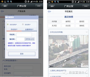 想足不出户就能办理车管丶出入境业务?申请护照想实现预约排号?出门在外要实时查询况和交通资讯?对广州的市民来说,现在轻触手机屏幕,一切皆可实现。“广州”号有“况资讯丶服务事项丶便民指南”三个主菜单,每个菜单下面有三个分项指令,微信用户轻轻点击即可查询况地图丶实时交通动态丶交通违法信息,预约出入境和户政等业务,并已经实现了往来港澳通行证再次签注业务办理功能。这是目前全国机关开通综合服务最多的政务微信,也为政务微信做好指尖上的为民服务指明了方向。