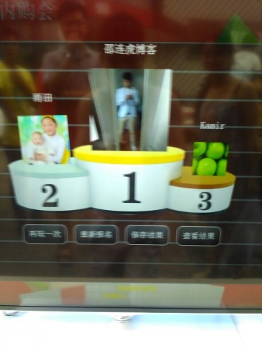 比赛的时间在一分钟左右,而且我也知道要想赢得比赛必须得大幅度的摇动手机以及快速的摇。等真正的开始后,我便使劲的摇,累的我真的够呛了,便换手摇,老婆在旁边说加油我是第一名。没想到最后我真得了第一名,旁边的女孩问我,为什么她比我摇的快没有得第一呢?因为我摇的幅度大。看下我的战果,如下图(有点模糊,没拍清晰,激动的):
