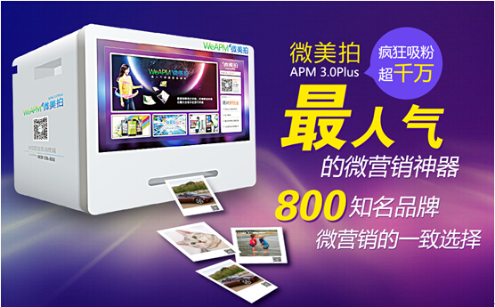 Weapm微美拍互动营销终端是一款帮助商家吸引粉丝的线下互动工具,消费者可以在线下关注微信打印机屏幕上的二维码,成为商家微信平台的粉丝,然后通过将自己想要打印的照片发送到商家的平台上,打印机就自动会打印出照片。