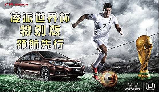 广汽本田在2013年6月即邀请了足球明星C罗为旗下的凌派车型代言。广汽本田一方面看中了C罗的影响力,一方面也是希望C罗在今年世界杯能继续大放异彩,带动广汽本田再火一把。这似乎是个注定会赢的局,葡萄牙在2006、2010年的世界杯上都表现不俗。