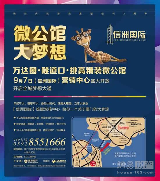 网易房产讯(编辑 郑剑)信洲国际()——万达圈·隧道口·挑高精装微公馆,营销中心将于9月7日盛大,全城梦想大道。项目主打39-44㎡挑高SOHO,宜商宜居,畅享空间 ,商务接待、会朋待友、居家自助,,小空间也有大享受。咨询热线:4000678999转10419